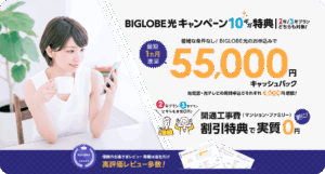 - 10ギガで総額55,000円の高額キャッシュバック!